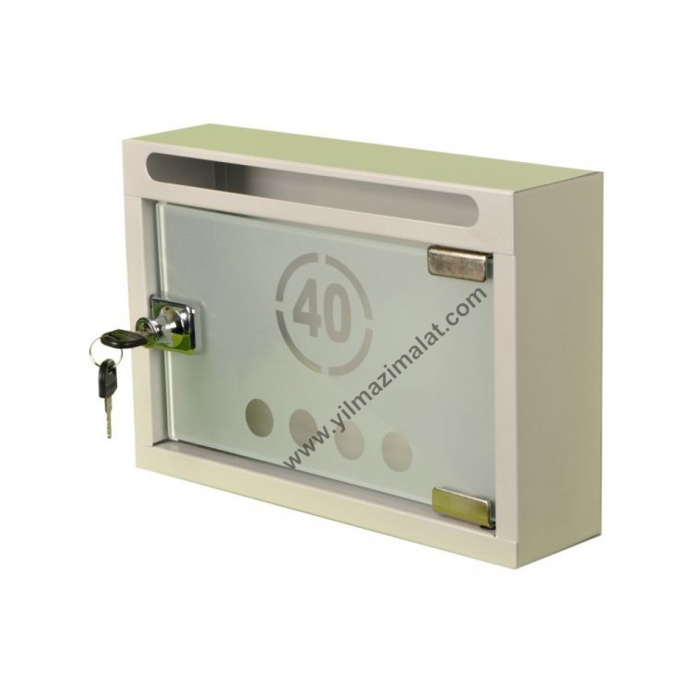 Kasa DKP sac üzeri Elektrostatiktoz boyalı (Pulver Marka vernikli polyesterli boya) olanPosta Kutularının Kapakları 5 mm. Temperli Satene (kumlamalı) Camlı, 6 mm. Temperli Reflekte Camlı ve 5 mm. Pleksiglass lı olarak olarak imalatıyapılmaktadır. Samet Marka menteşe kullanılan Posta Kutularında Garantili Camkilidi kullanılmaktadır.